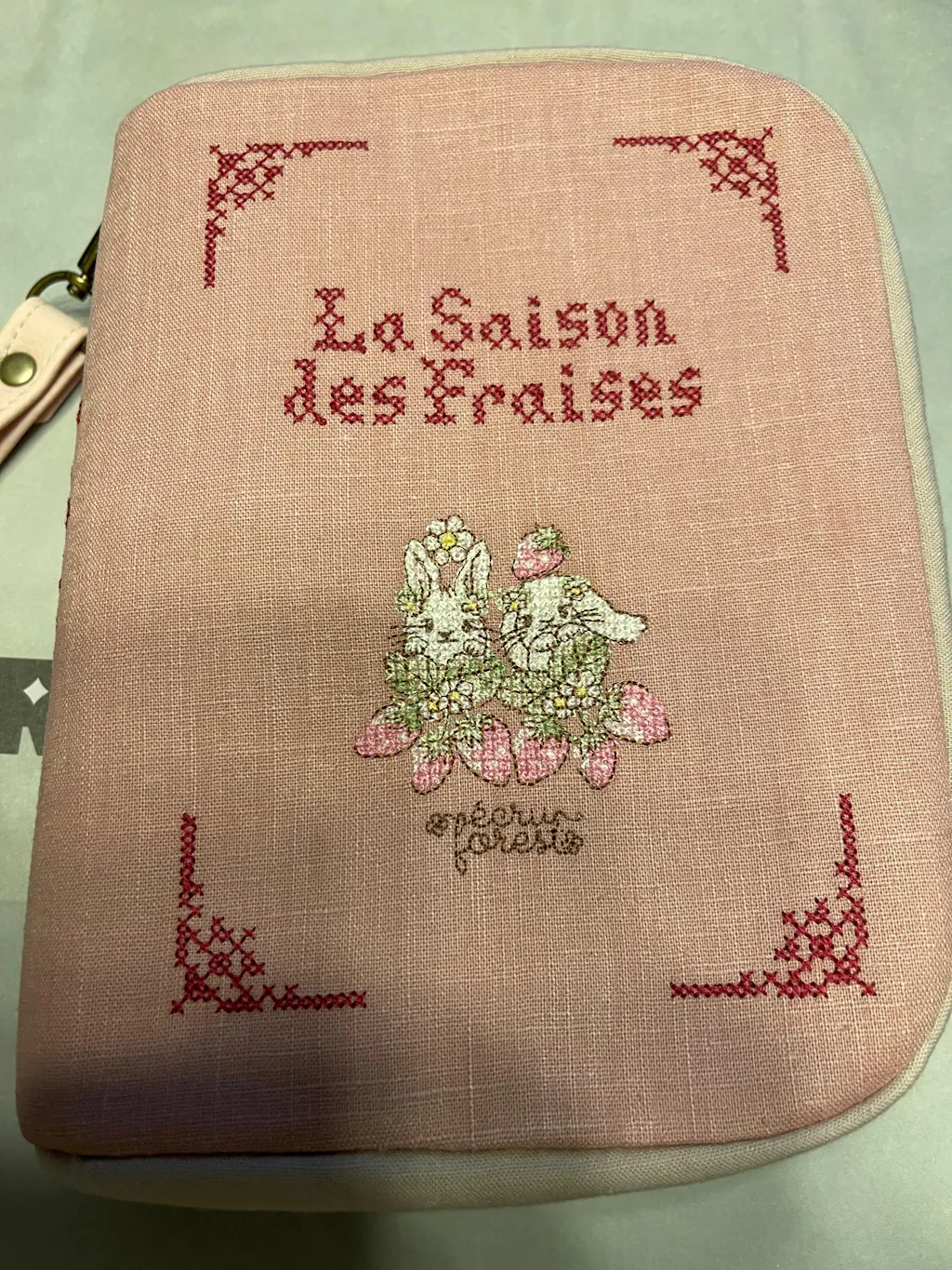 [Large Book-Shaped Planner Pouch] Rabbit Embroidery Cross Stitch Machine Embroidery Handmade