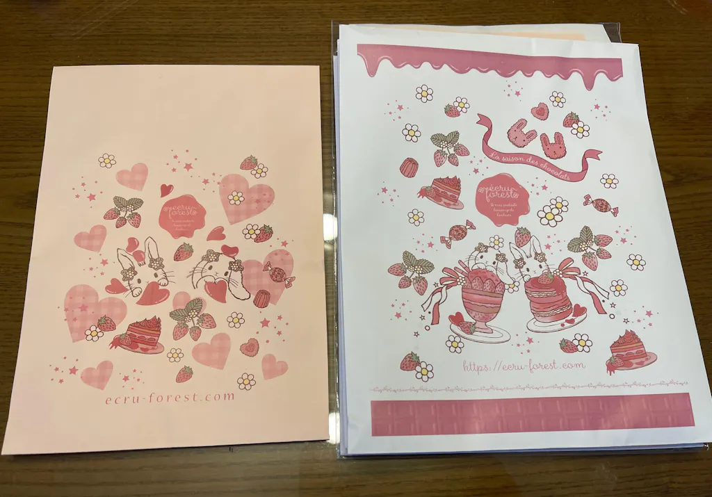ピンクショコラバージョンの封筒が登場しました。 こちらは可愛いピンク色で少し小さめサイズ、程よいサイズ感です。白地の大きめサイズも購入しています。 ギフトに使ったら喜んでもらえそうです。1枚は保存用、手元に残します♡