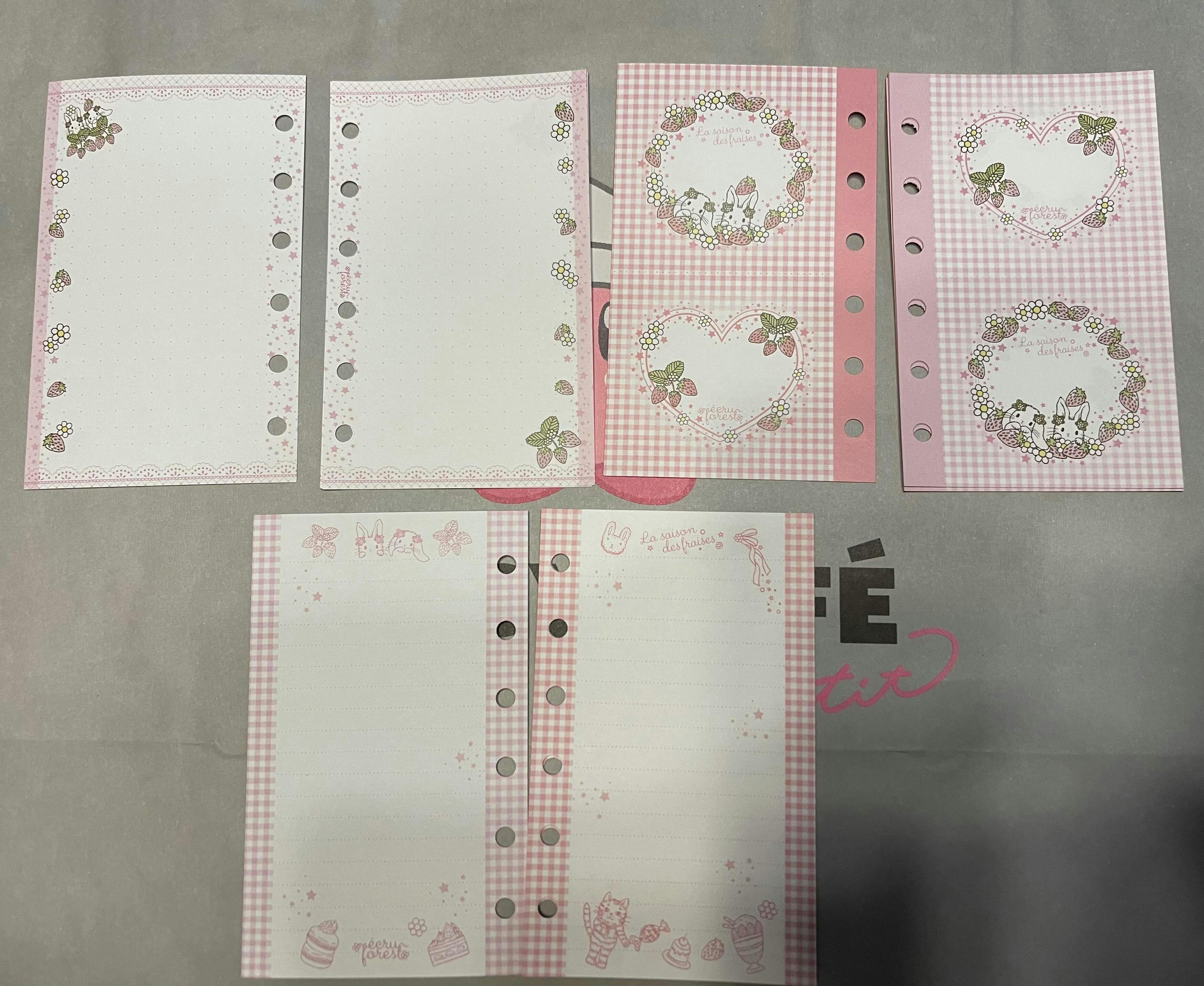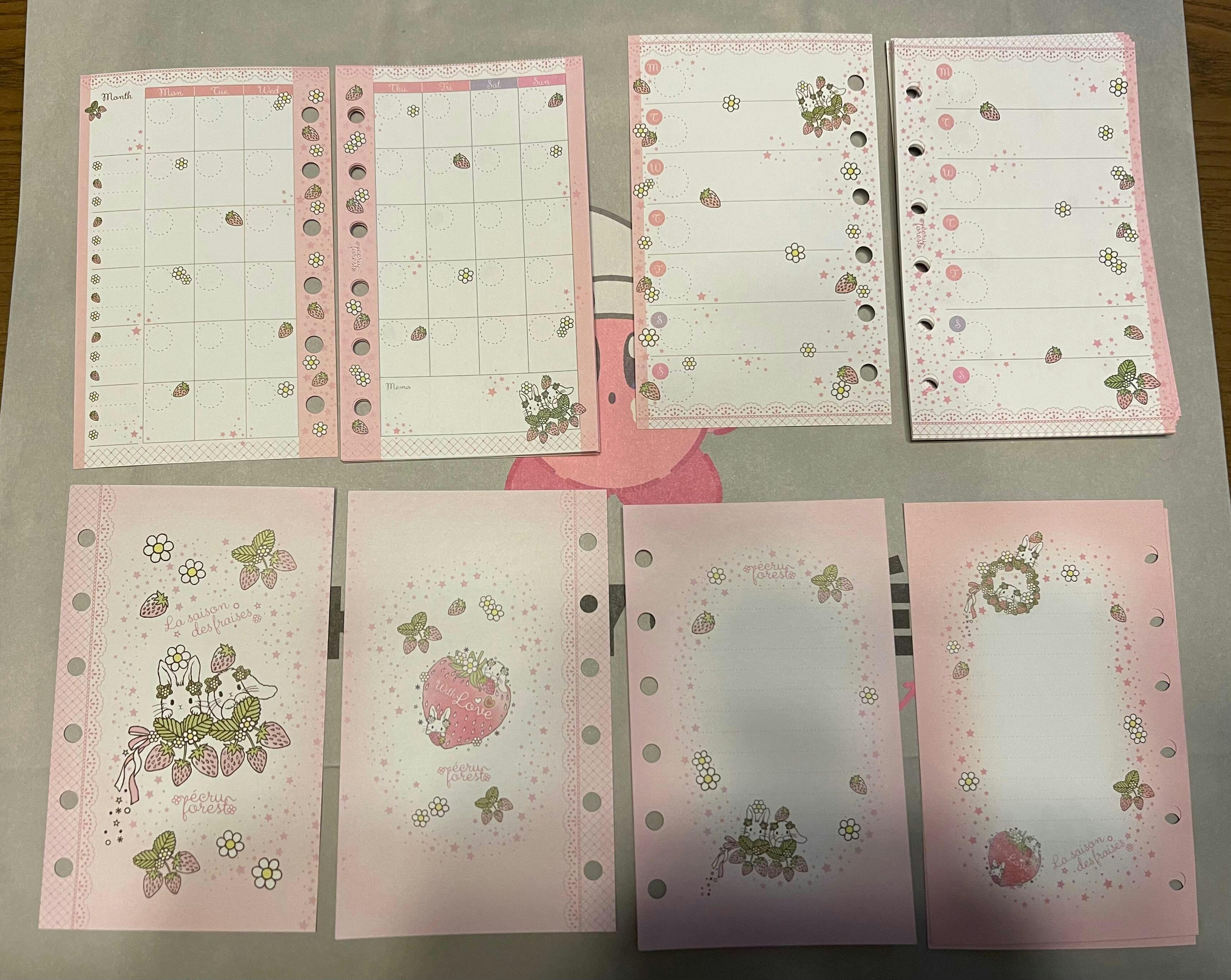イチゴとうさぎ★レフィルセット ピンク<br>【ミニ6穴 】システム手帳<br><span>可愛い 月間マンスリー・週間ウィークリー・メモ:万年筆にも  イチゴ たれ耳うさぎ</span>